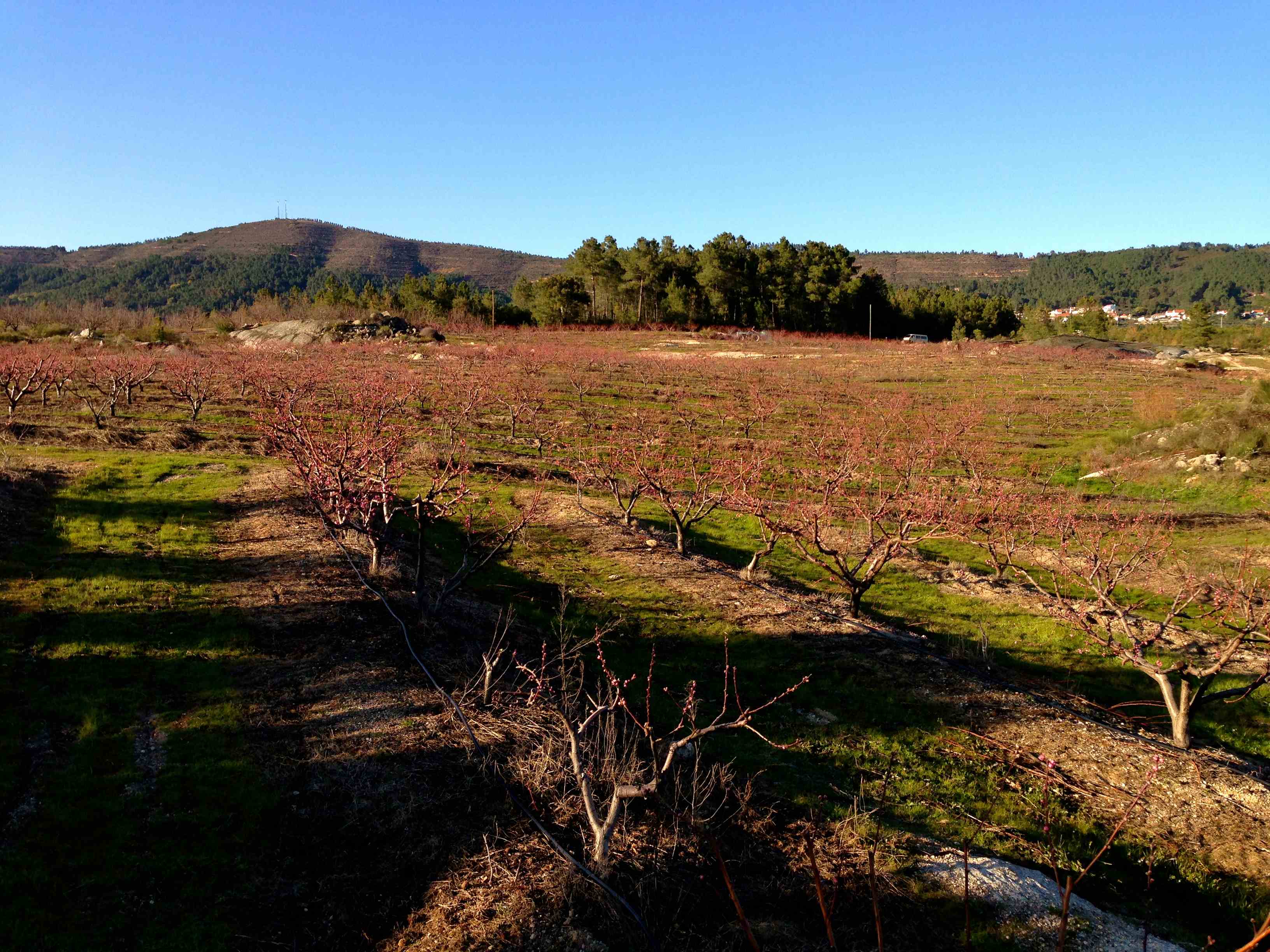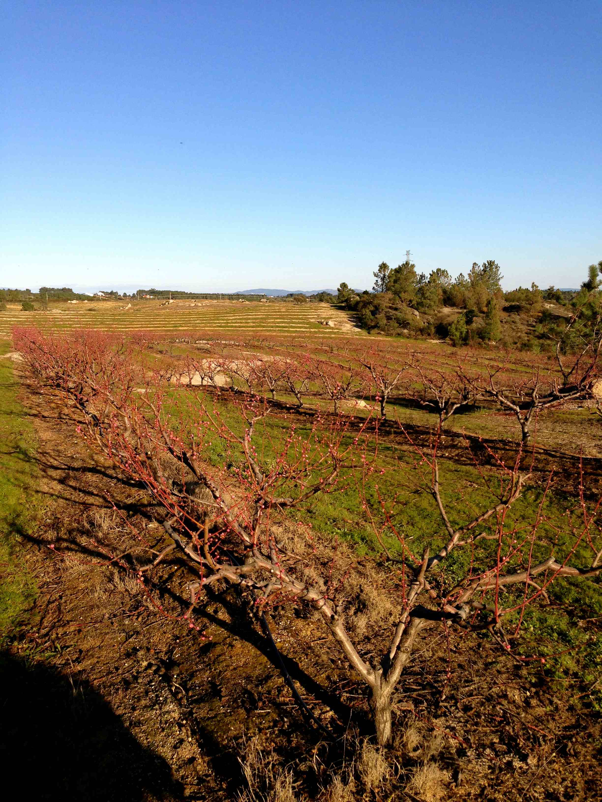 Apesar do frio gelado (chegando aos -4º à noite), os pomares dos pessegueiros (nectarinas) começam a encarniçar, aquecendo a paisagem e os nossos corações com a promessa de uma boa colheita!