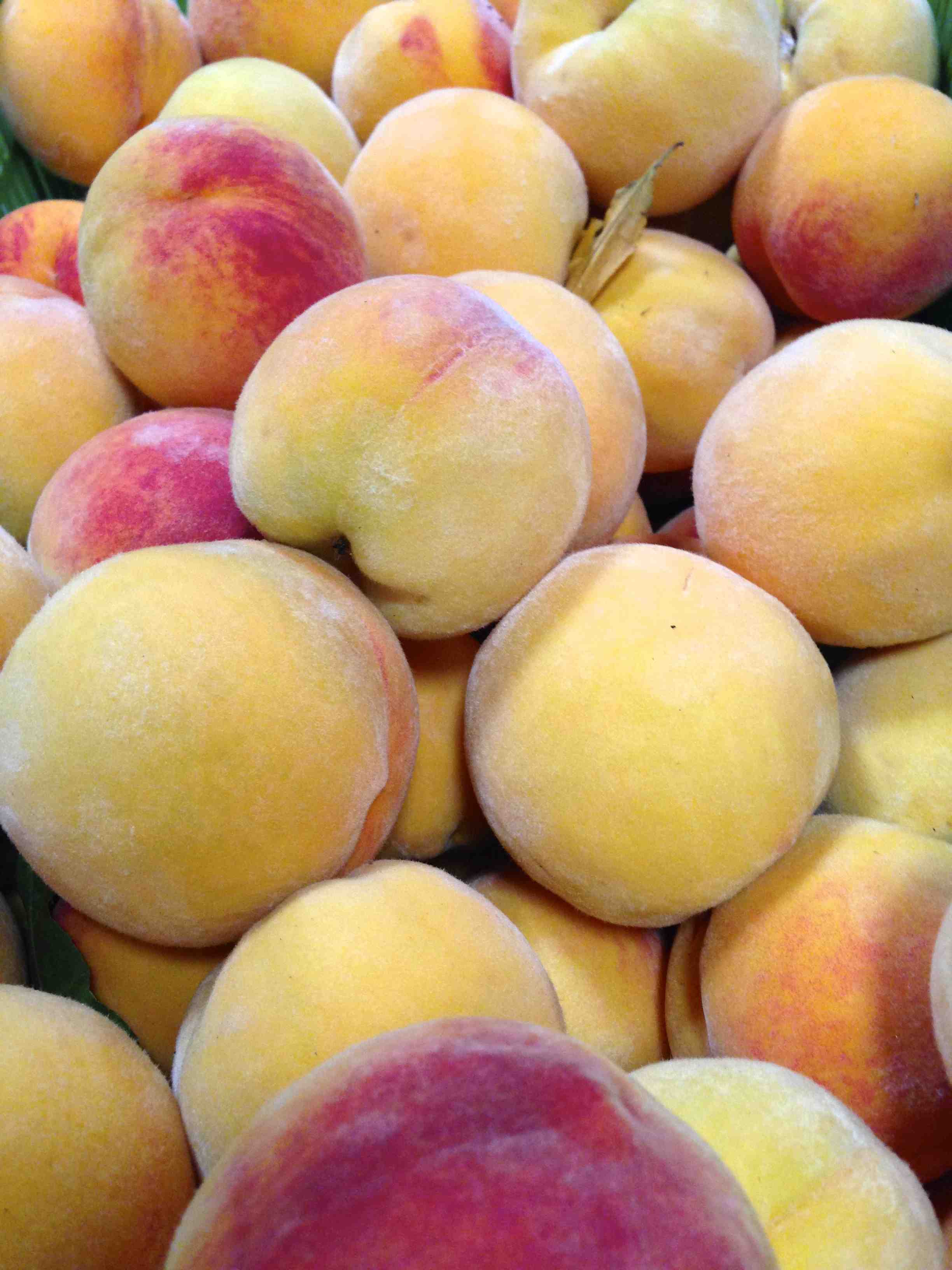 É assim que os pêssegos chegam ao nosso armazém. / This is how the peaches arrive at our packhouse.
