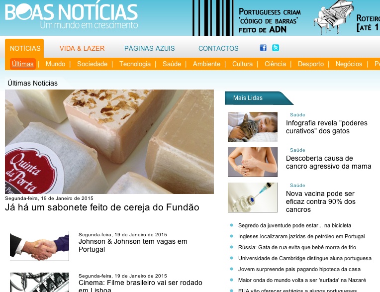 Fartos de más notícias andamos nós todos, por isso aqui fica o link deste jornal que nos descobriu e que nós, em boa hora, descobrimos: boasnoticias.pt
